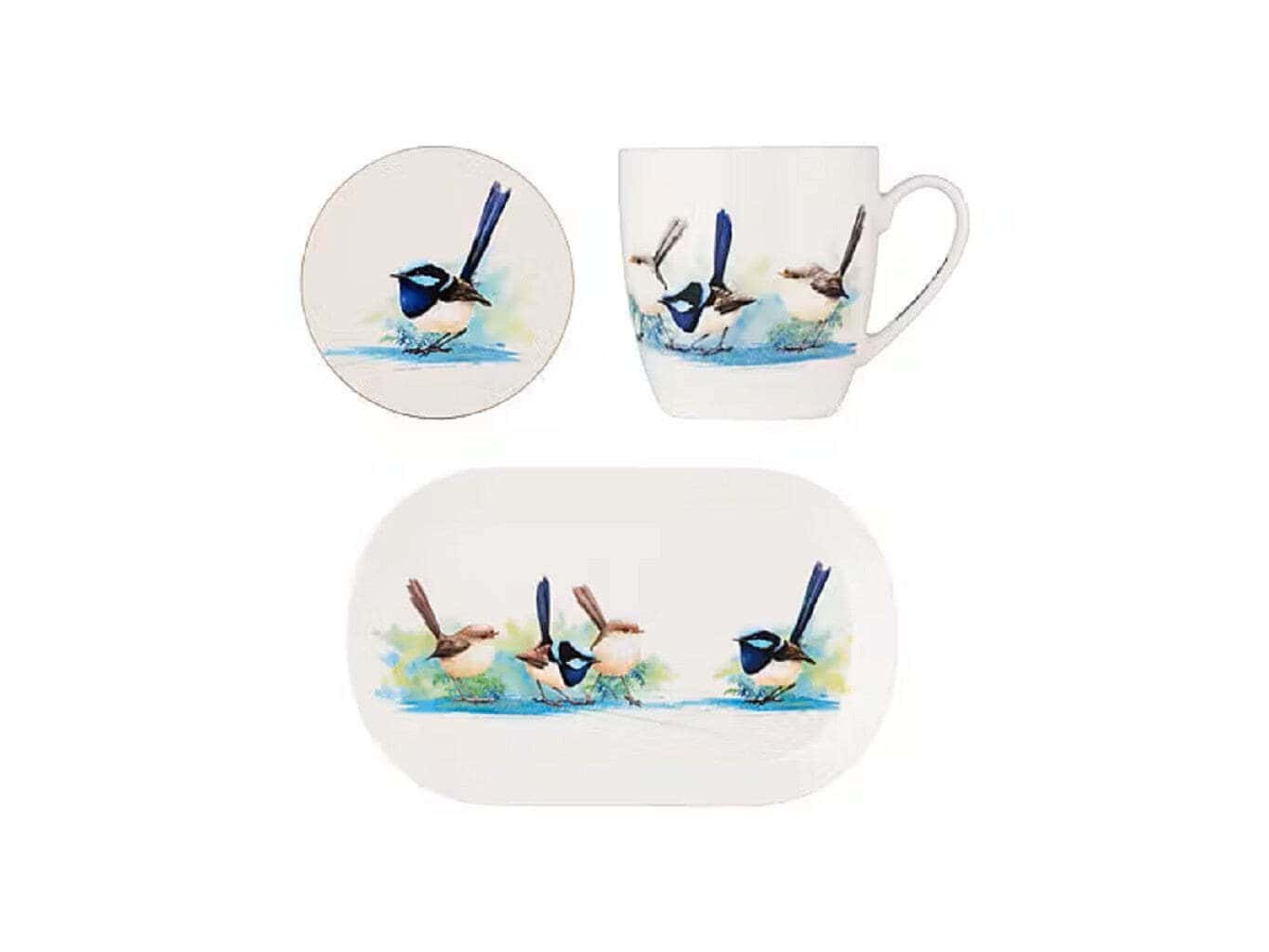 Celebrate the beauty of our native birds with this Cockatoo gift set consisting of a mug, coaster and tray from the Bird Life collection. Designed in collaboration with artist Katherine Castle, it features an iconic Australian Blue Wren illustration, captured in delicate detail and rich colour. This gorgeous set includes a porcelain mug, a melamine tray and a cork-backed coaster – just add your favourite tea or coffee. Perfect for gifting, it’s great to mix and match with the rest of the Bird Life collection.